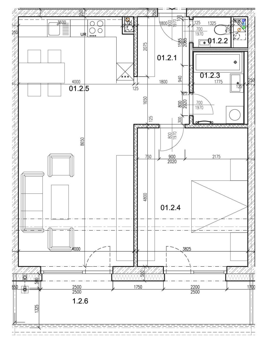 | Obývačka + kuchyňa (01.2.5 ) | 34.36 m² |