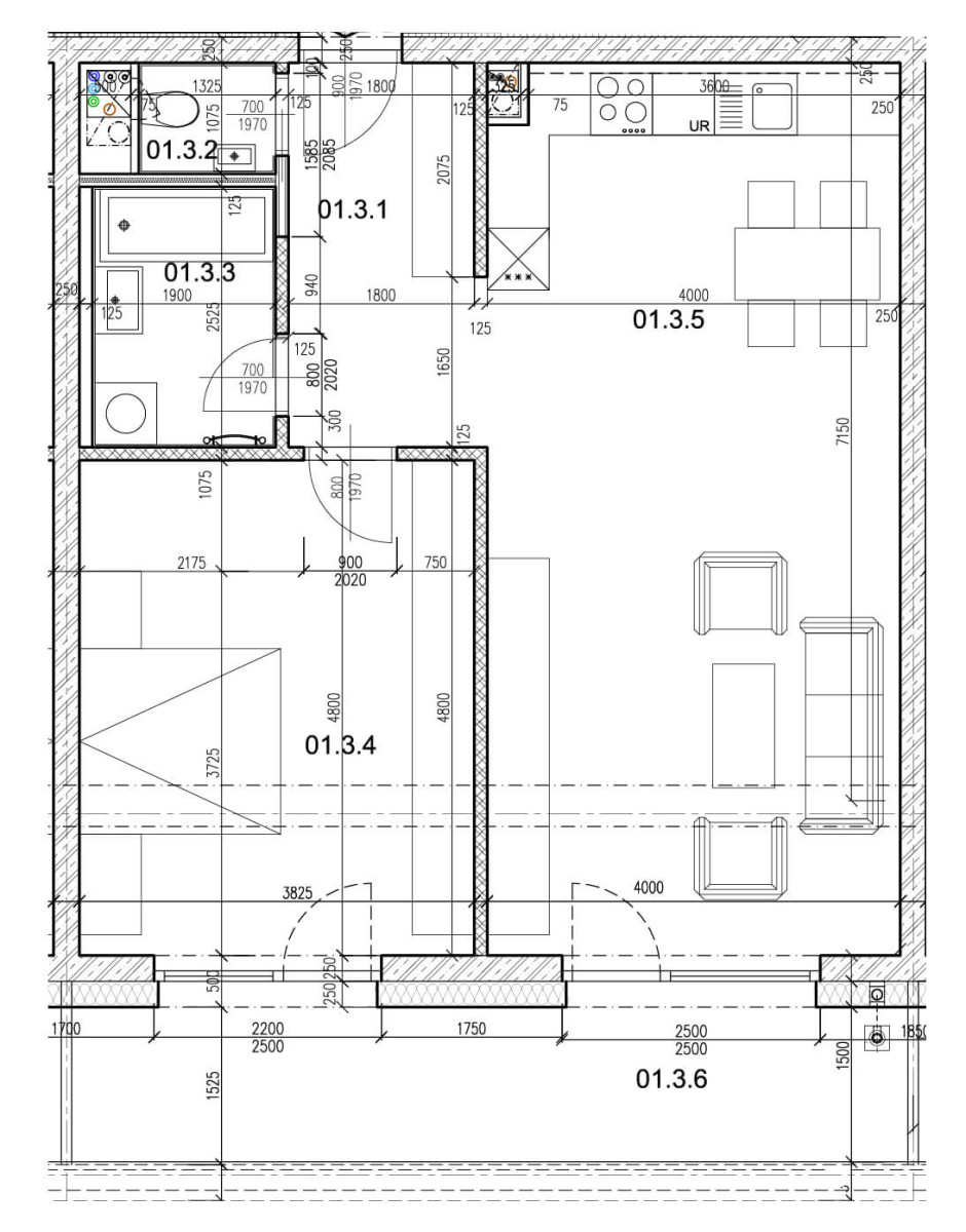 | Obývačka + kuchyňa (01.3.5 ) | 34.36 m² |