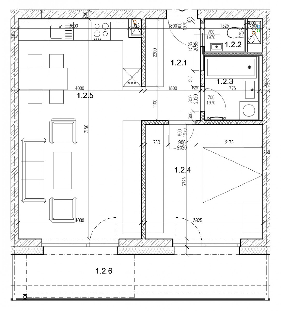 | Kúpeľňa (1.2.3 ) | 3.73 m² |