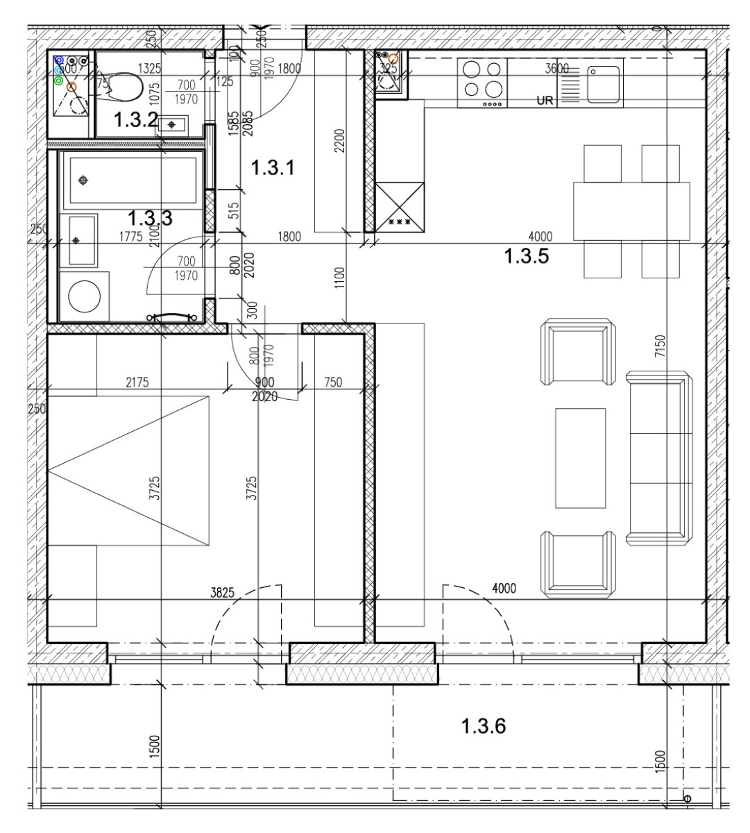 | Kúpeľňa (1.3.3 ) | 3.73 m² |